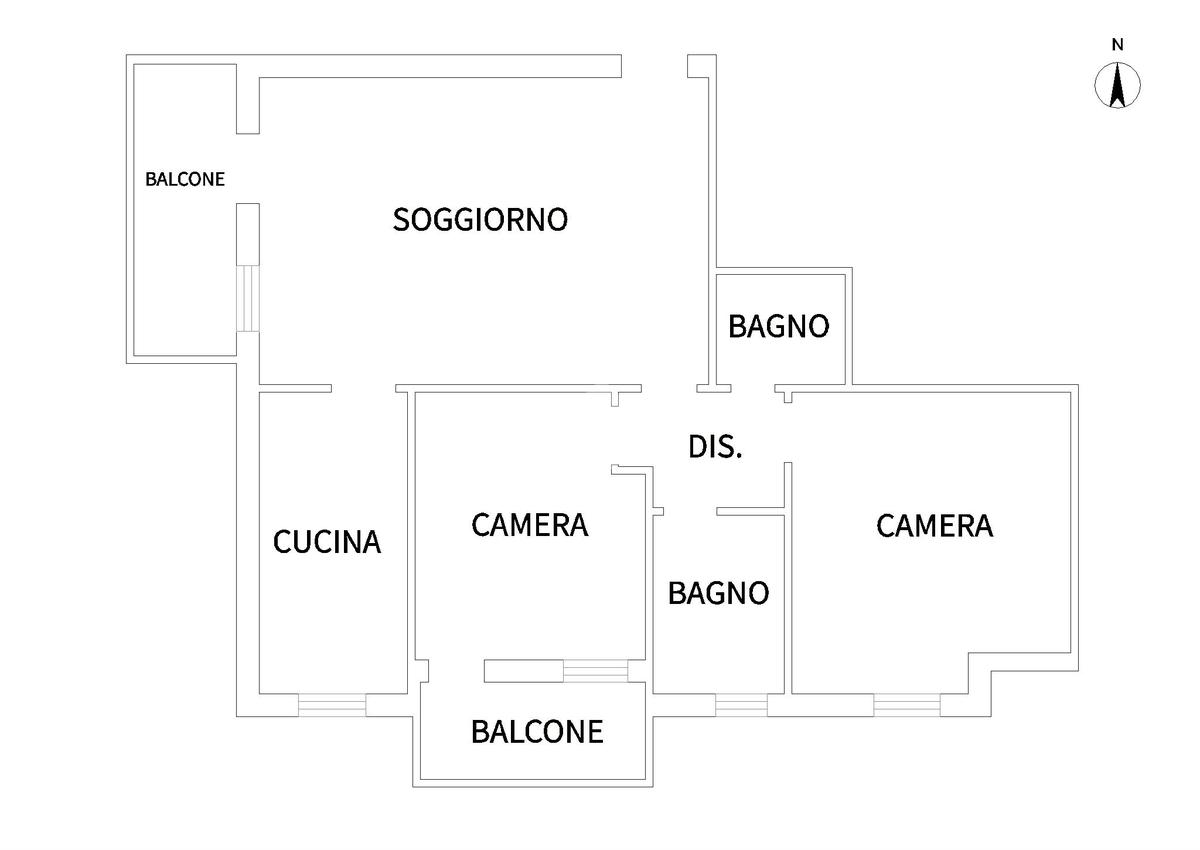 La zona notte è poi composta da due camere, matrimoniale e doppia, e da due bagni, uno finestrato con doccia ed uno cieco, anch'esso con doccia. Nel bagno cieco è stata ricavata la lavanderia.