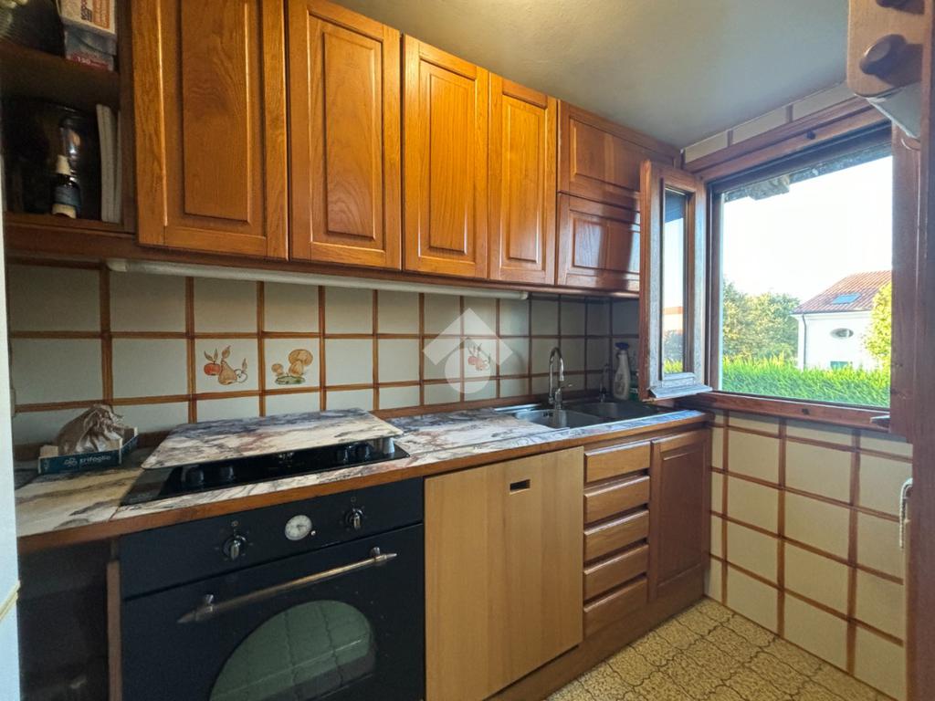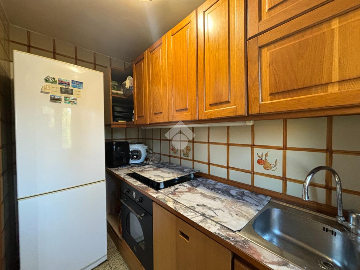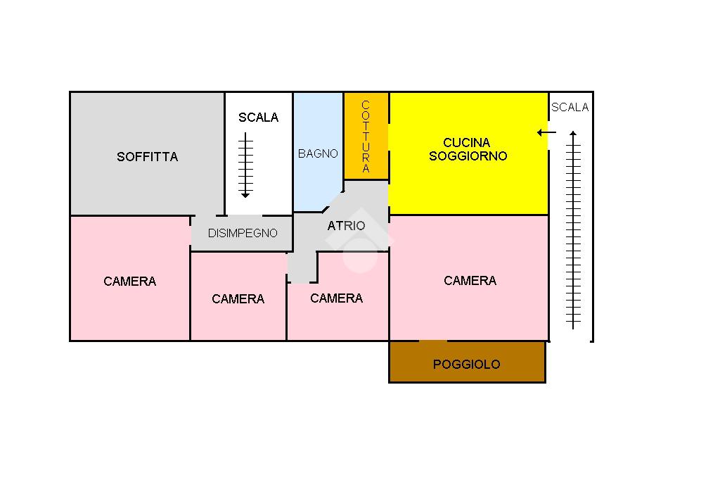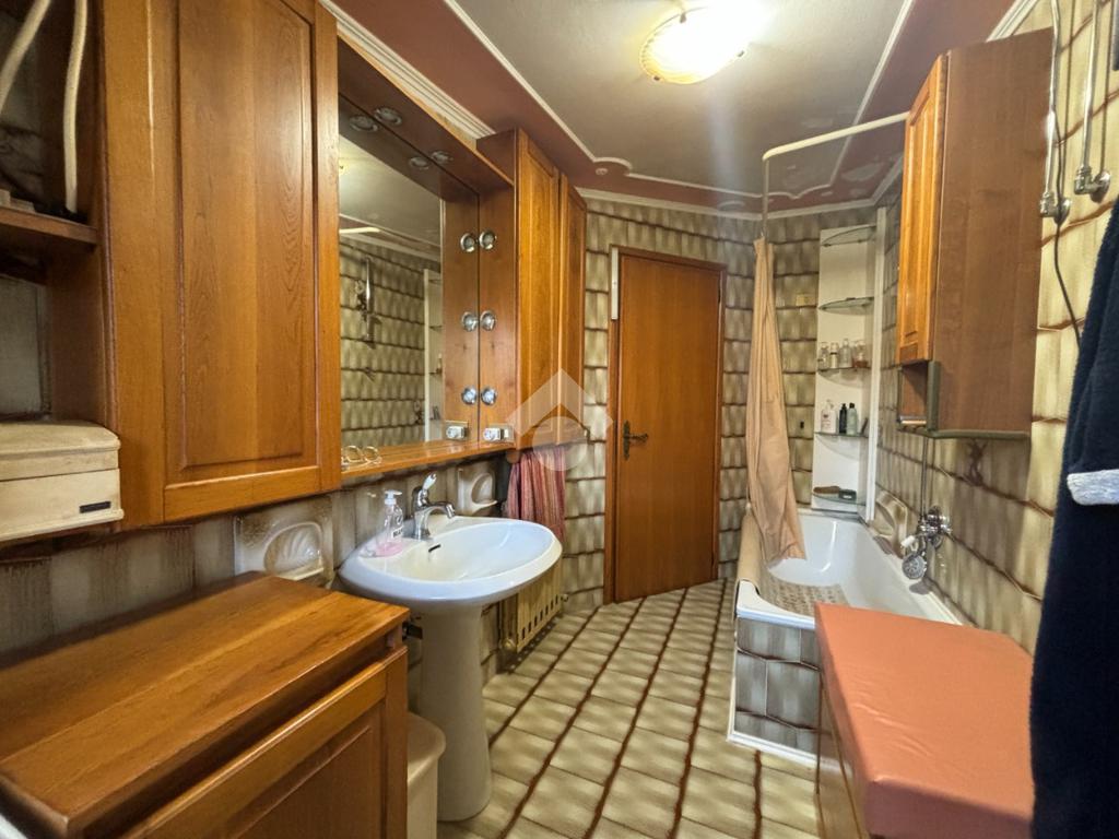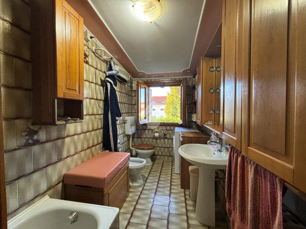 L'appartamento al piano primo è composto dalla zona giorno open space con cucinotto, troviamo poi tre camere ed il bagno, finestrato con vasca. Una delle camere è servita da poggiolo.