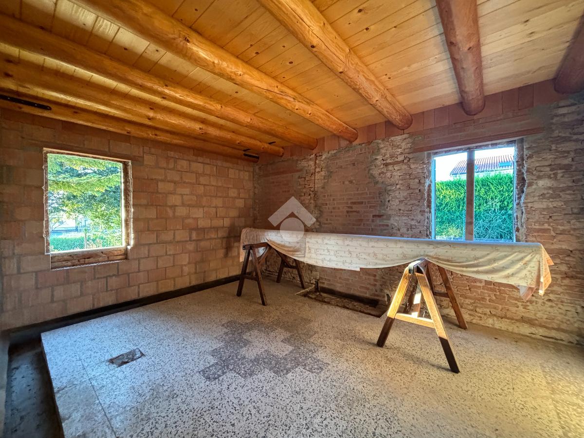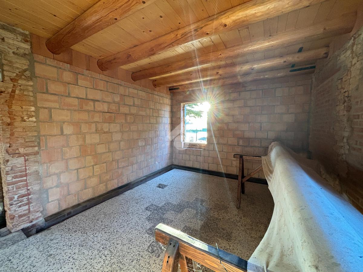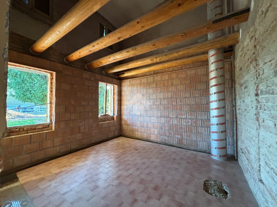 L'appartamento al piano terra, ad oggi al grezzo, è composto dalla zona giorno, due camere, bagno finestrato, lavanderia e cantina. Tramite una scala interna è inoltre possibile raggiungere il piano primo, dove troviamo un'altra camera e una stanza travata a vista.