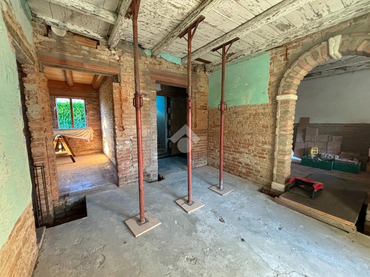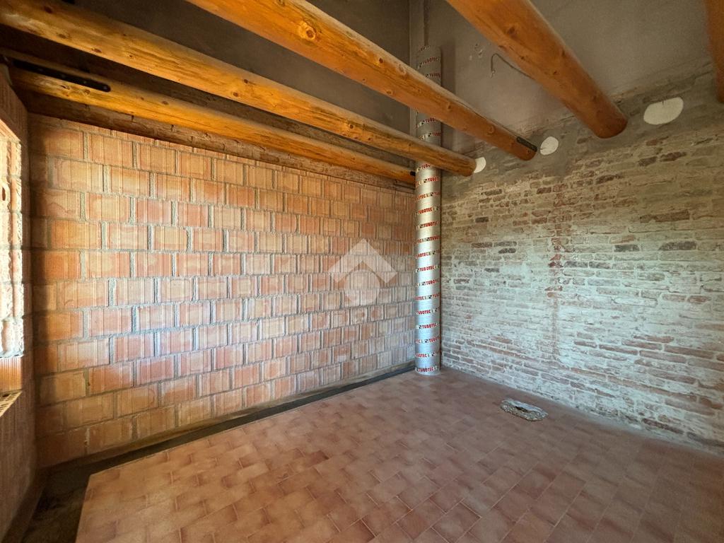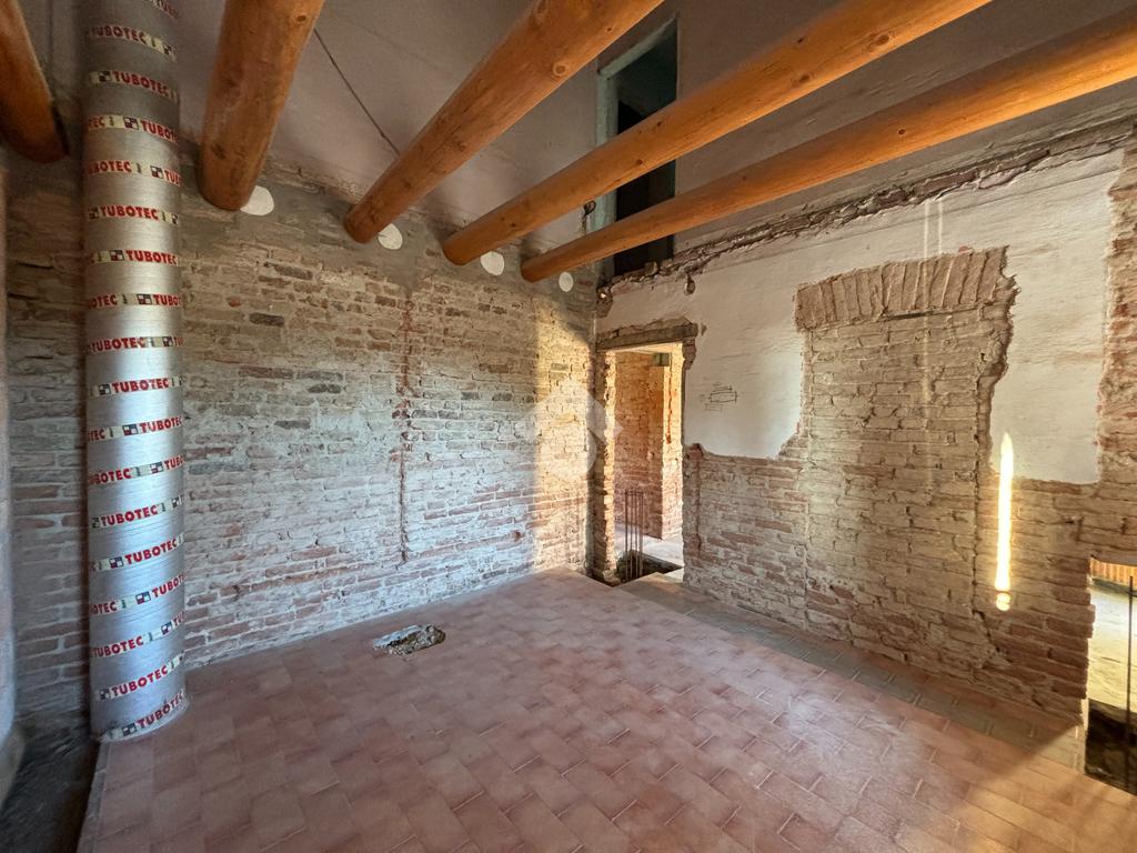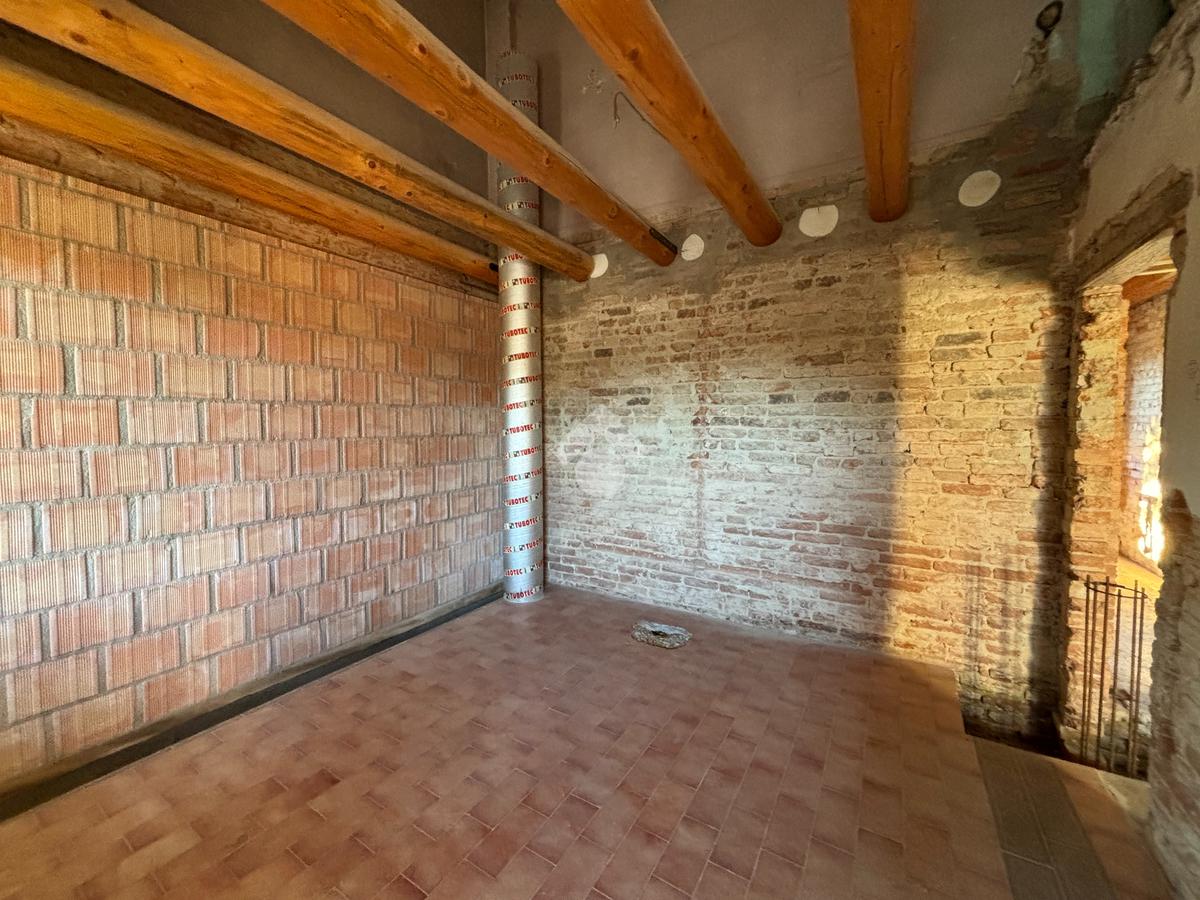 L'appartamento al piano terra, ad oggi al grezzo, è composto dalla zona giorno, due camere, bagno finestrato, lavanderia e cantina. Tramite una scala interna è inoltre possibile raggiungere il piano primo, dove troviamo un'altra camera e una stanza travata a vista.