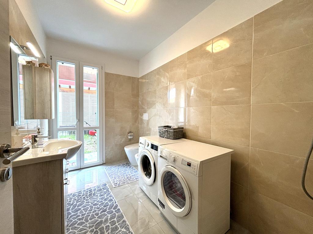 Troviamo poi un bagno finestrato con doccia dove, data la generosa metratura, è stata ricavata la lavanderia. Nel sottoscala è invece stato ricavato un comodo rispostiglio.