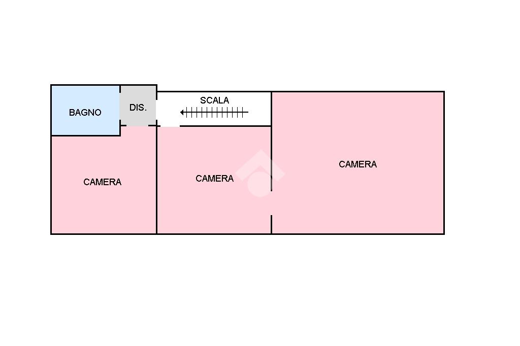 Al piano superiore troviamo poi tre camere ed un bagno, finestrato con vasca.