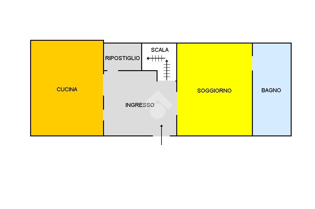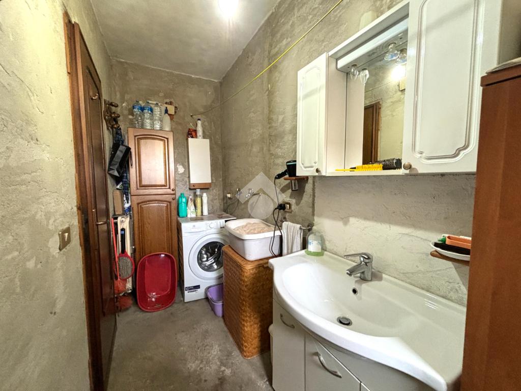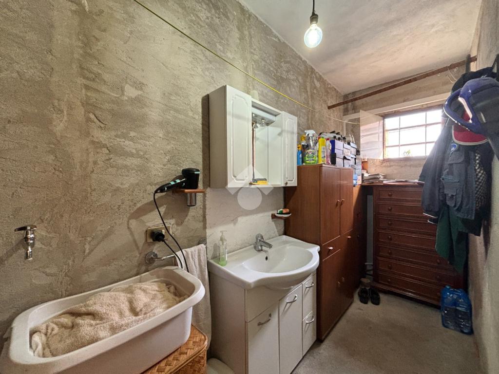 In ingresso, un ampio disimpegno separa la cucina abitabile dal soggiorno, abbiamo poi un ripostiglio finestrato, predisposto per sviluppare un bagno.
