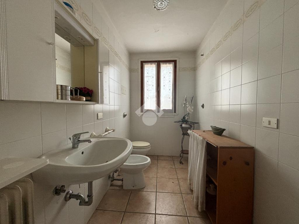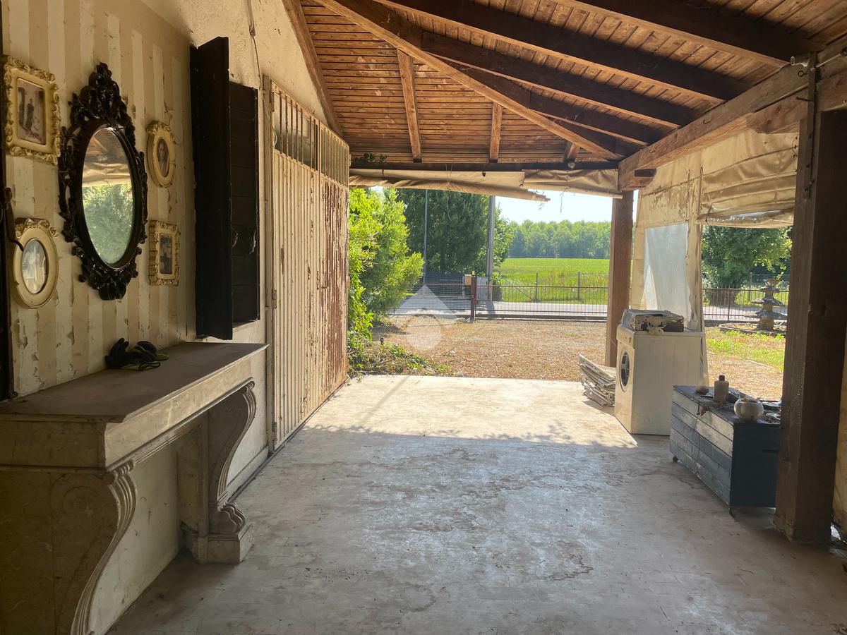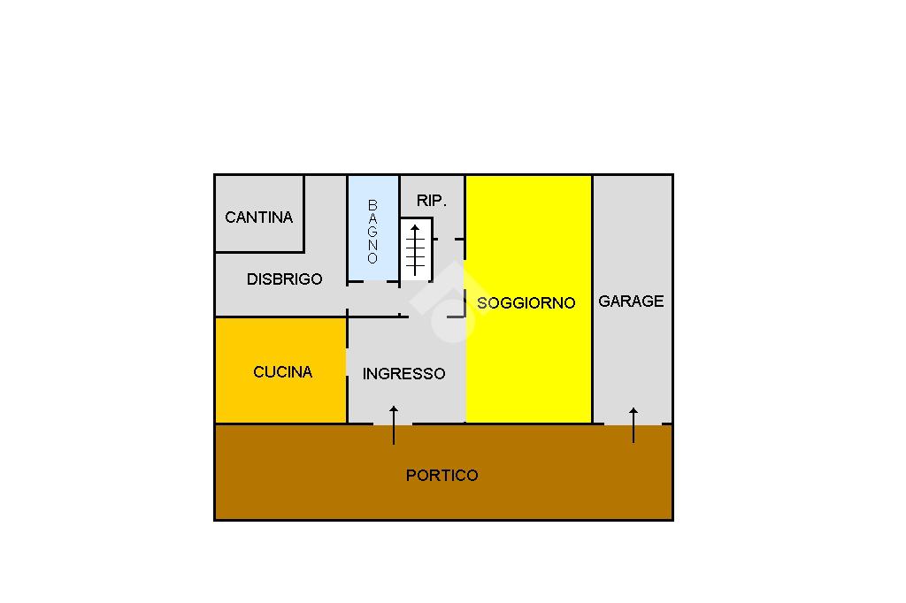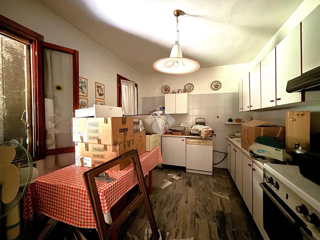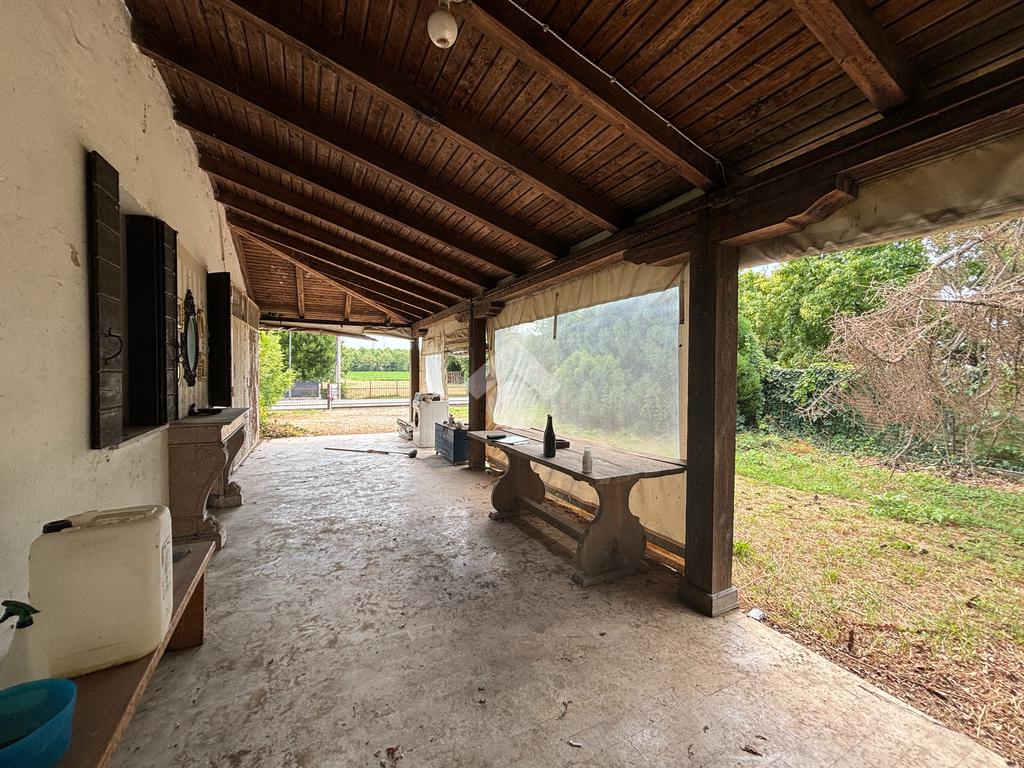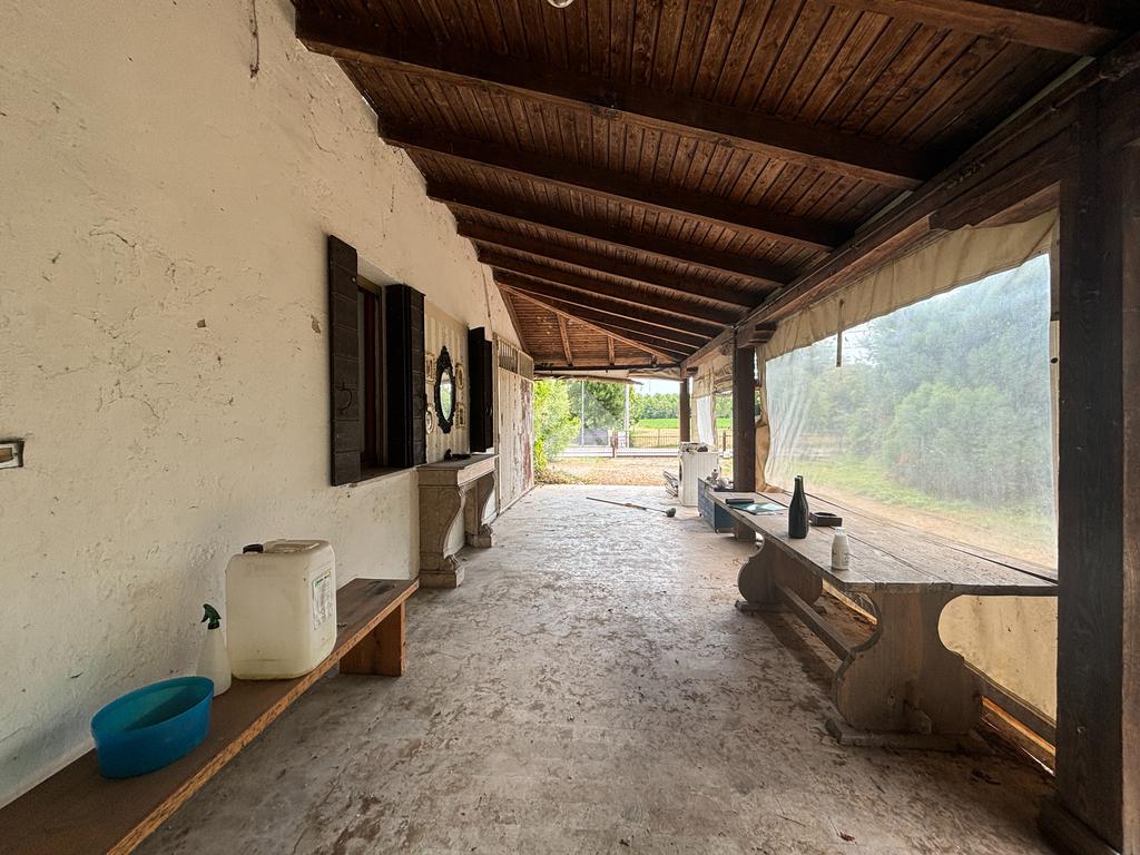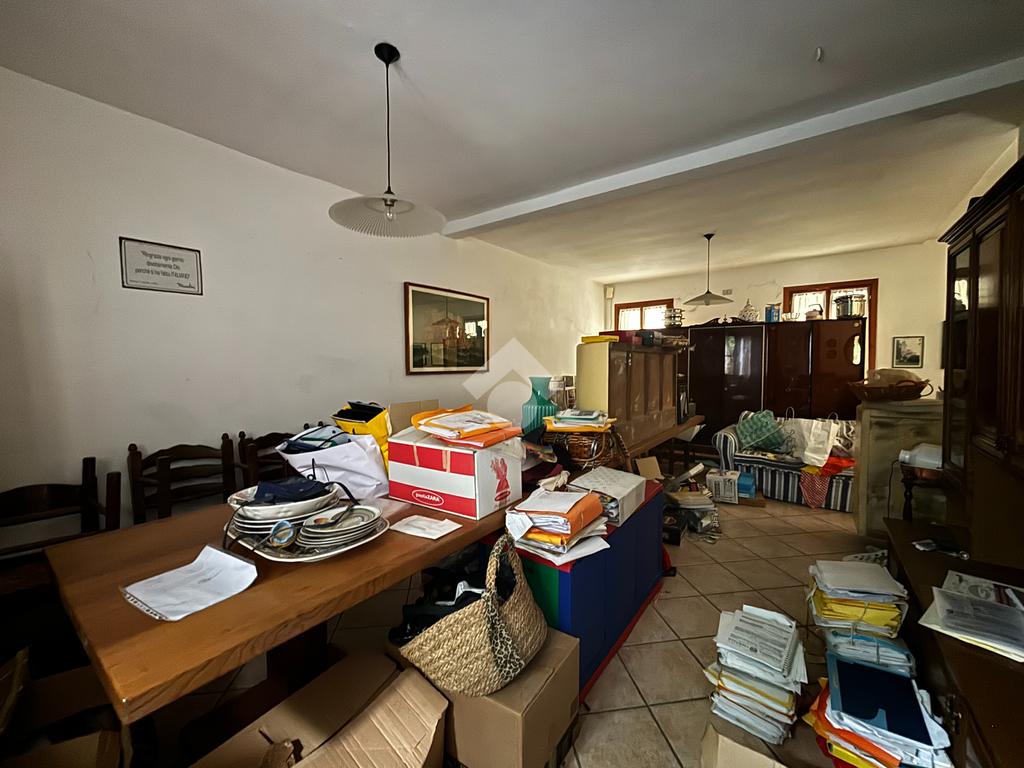 Dal porticato si raggiunge l'ingresso dell'abitazione dove troviamo l'ampio soggiorno, separato dalla cucina abitabile, abbiamo poi il bagno finestrato, un ripostiglio e la cantina.