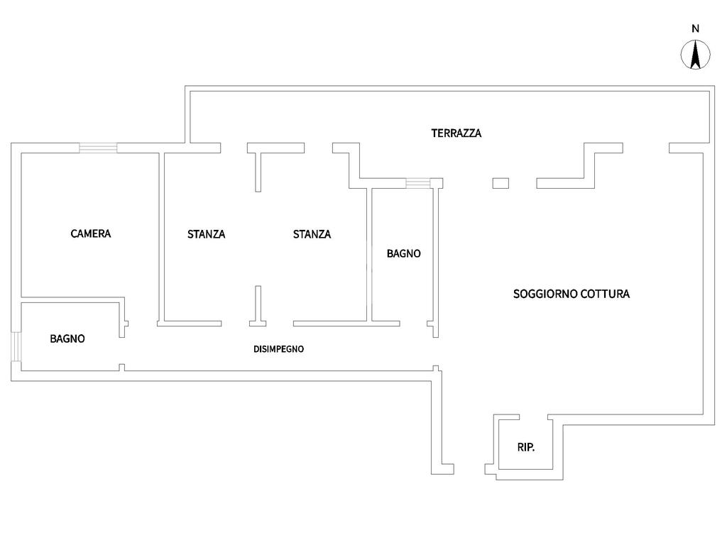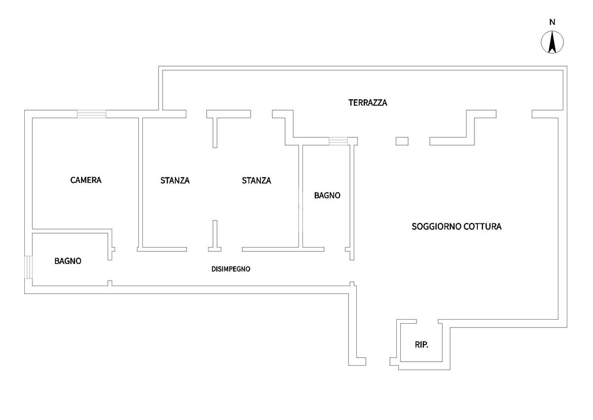 La zona notte è poi composta da tre camere, una matrimoniale e due doppie. Ad oggi il muro divisorio tra le due doppie è stato rimosso rendendole comunicanti. Basta però ripristinare il muro per recuperare la terza camera.