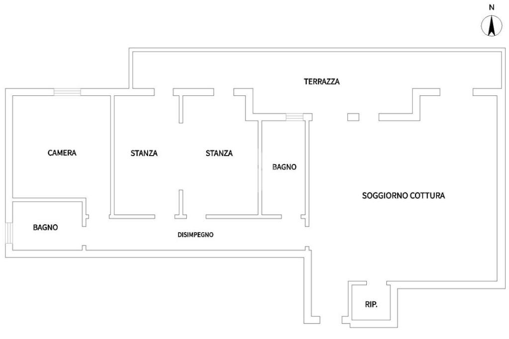 In ingresso si accede alla zona giorno open space con angolo cottura di oltre 50mq, la quale è servita da una terrazza di circa 30mq, ideale per pranzi e cene con gli amici.