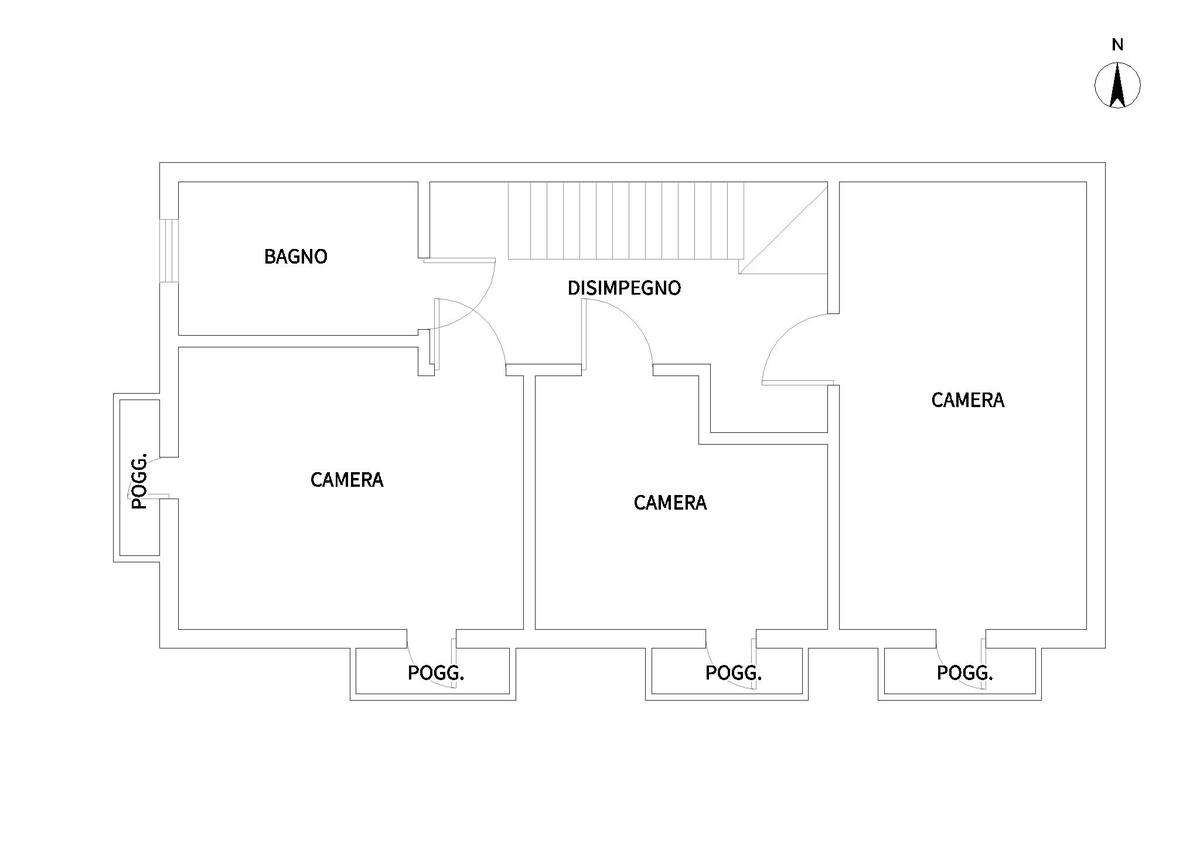 Al piano primo troviamo la zona notte composta da tre camere a scalare: matrimoniale dotata di cabina armadio, abbiamo poi una doppia e una singola. Completa il piano primo il bagno finestrato con doccia.