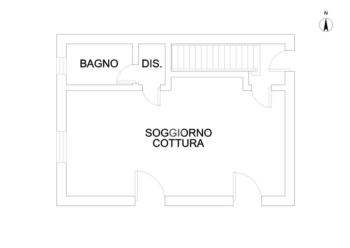 Esternamente all'abitazione troviamo lo scoperto, pavimentato, dove è stata ricavata una tettoia.