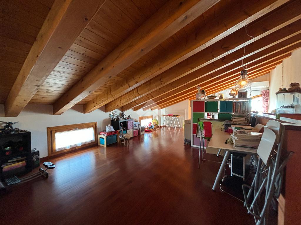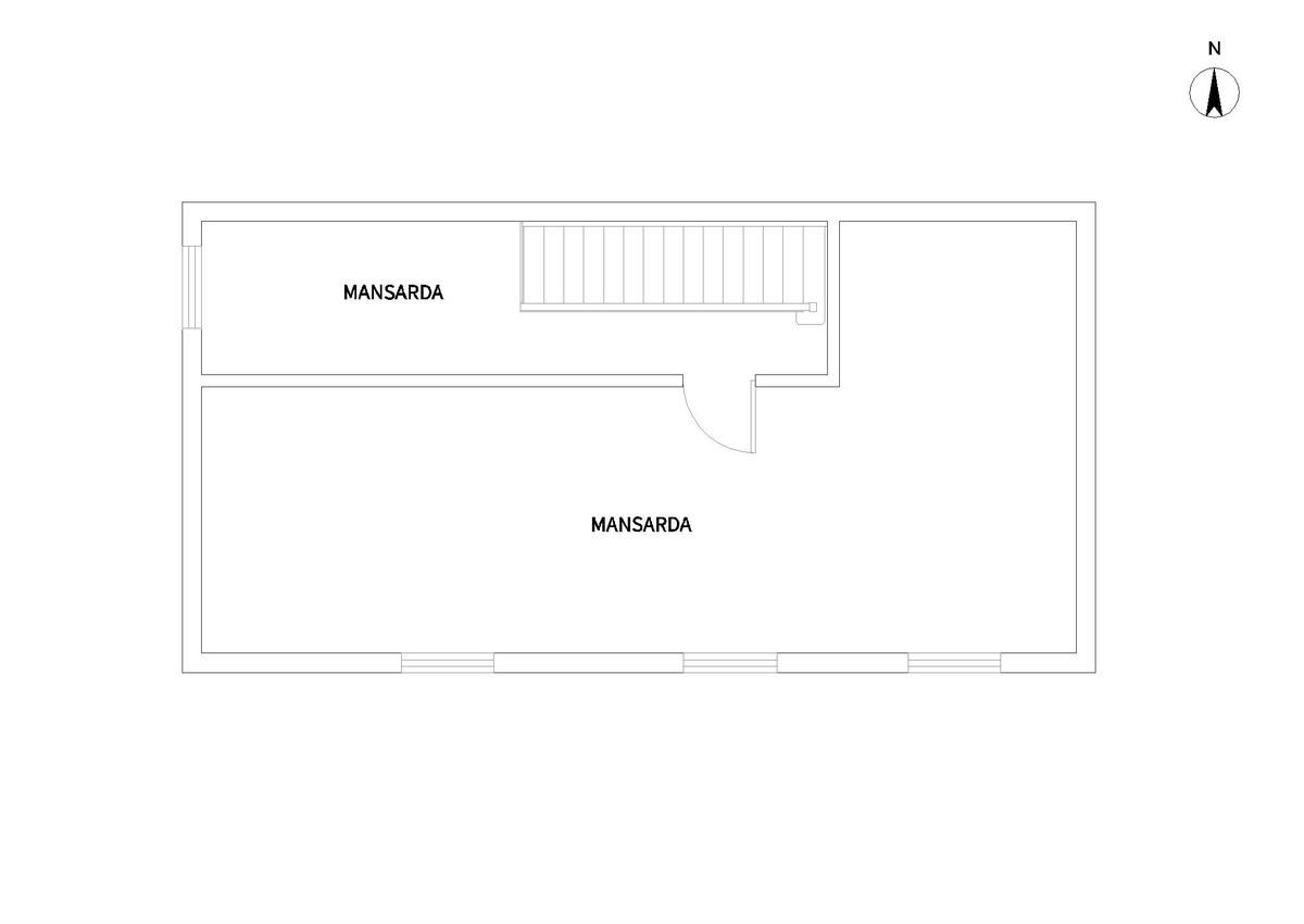 Al piano secondo troviamo infine la zona mansardata travata a vista, ad oggi open space, dove sarebbe però possibile ricavare due ulteriori stanze.