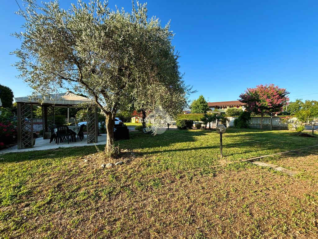 Esternamente troviamo il giardino piantumato, dove abbiamo un gazebo, perfetto per pranzi e cene con gli amici.