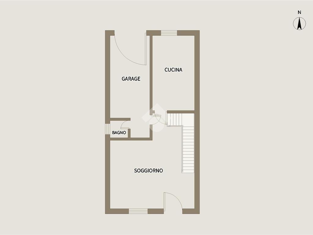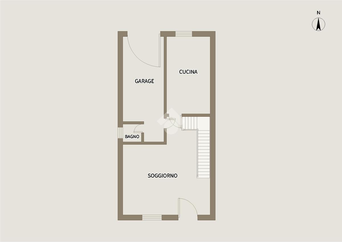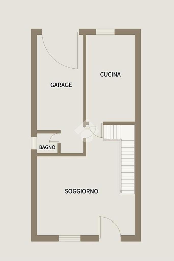 Al piano terra troviamo la zona giorno composta dal soggiorno, servito da un caminetto a legna, separato dalla cucina abitabile. Troviamo poi un ripostiglio, ricavato nel sottoscala.