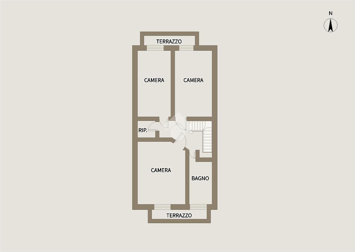 Al piano superiore abbiamo la zona notte con tre camere da letto, matrimoniale doppia e singola, il bagno finestrato con vasca, ed infine un comodo ripostiglio finestrato.